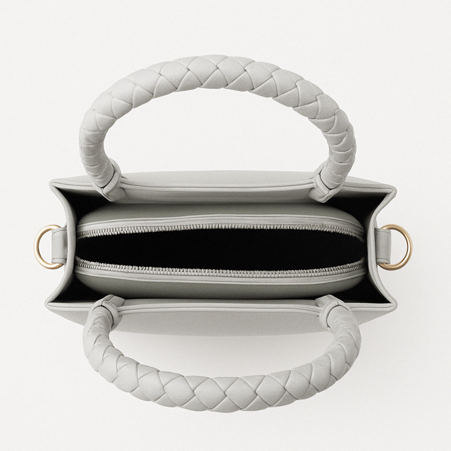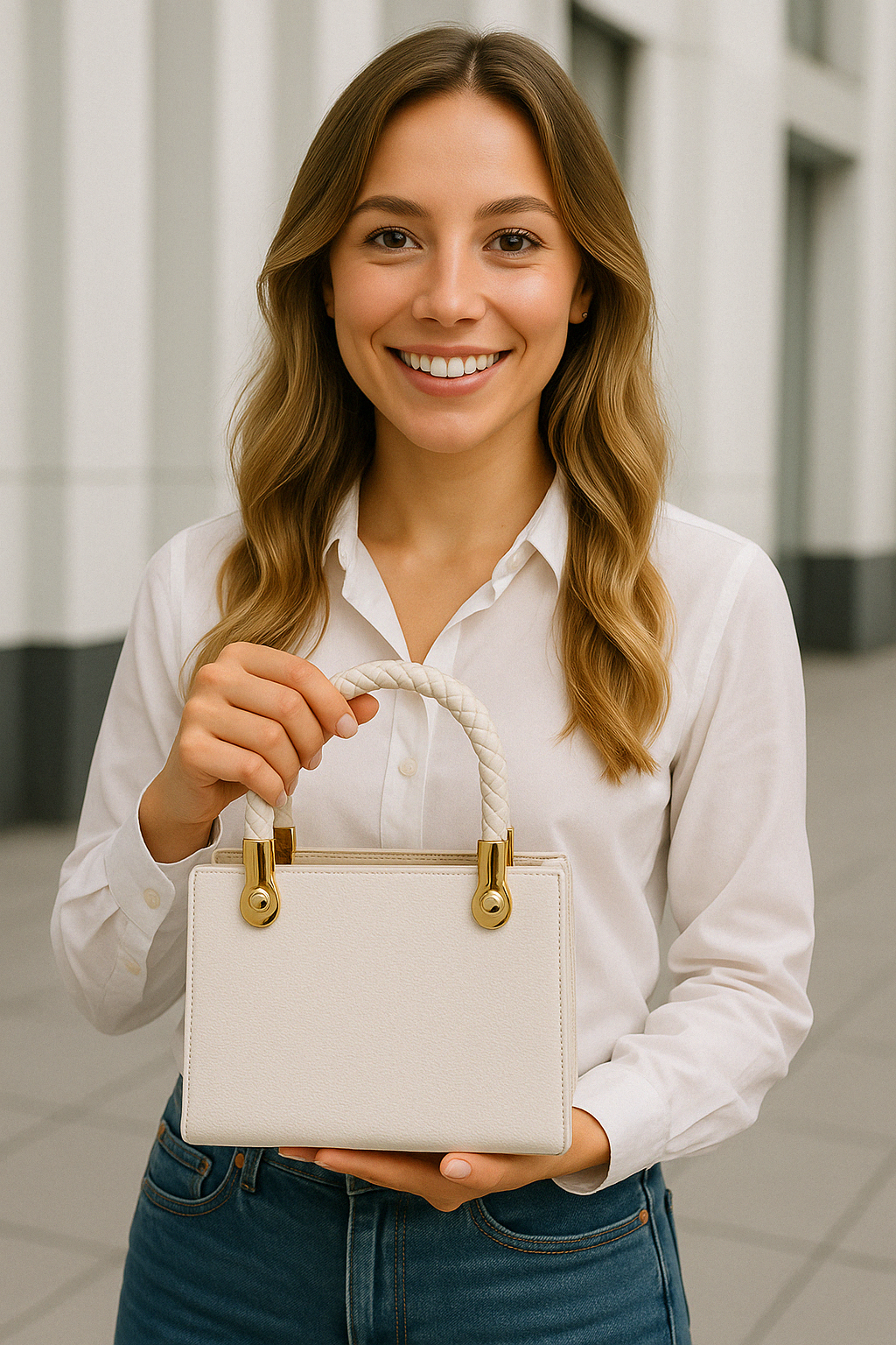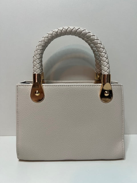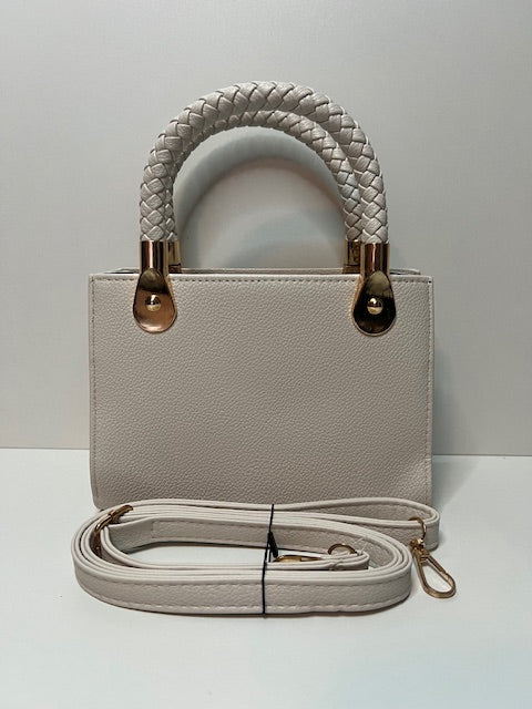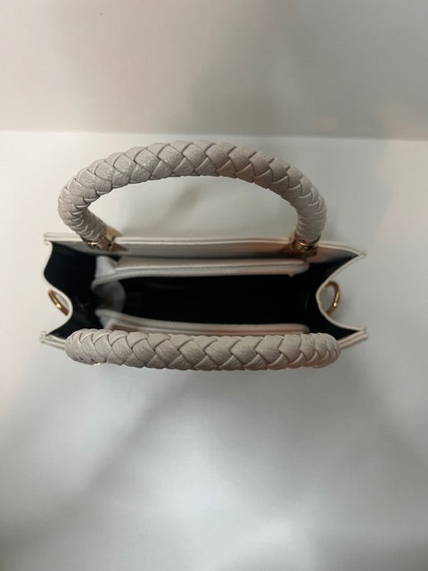 Deze stijlvolle handtas is vervaardigd uit hoogwaardig kunstleer en combineert een compacte vorm met een luxe uitstraling. De gevlochten handgrepen in combinatie met goudkleurige details zorgen voor een chique en moderne look. Met een formaat van 18 x 13 x 8 cm is deze tas perfect voor dagelijkse essentials, en perfect voor een festival.
